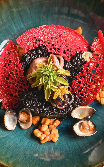 Remu vine, a seaweed nicknamed “Caviar of the Austral Islands”, whose texture is reminiscent of lemon caviar and whose taste evokes those South Seas, between sea salt and the scent of sea spray.